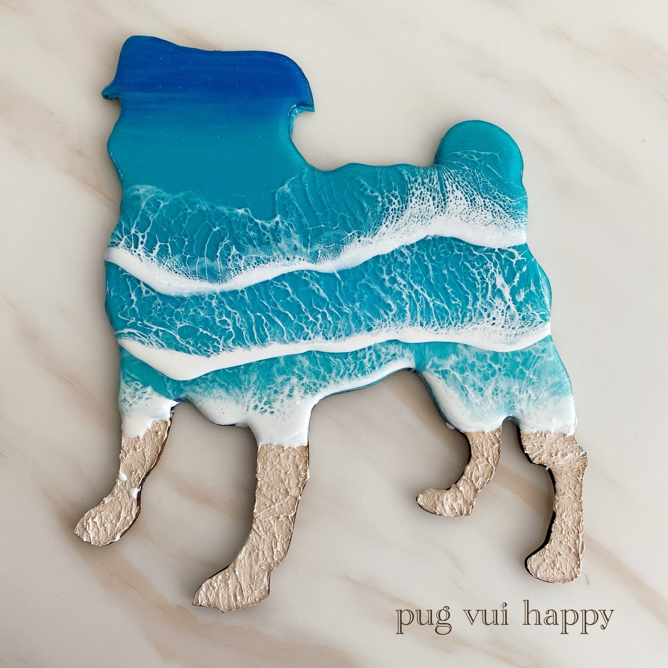 パグシルエット海アート 1 (23cm×18cm・送料込)