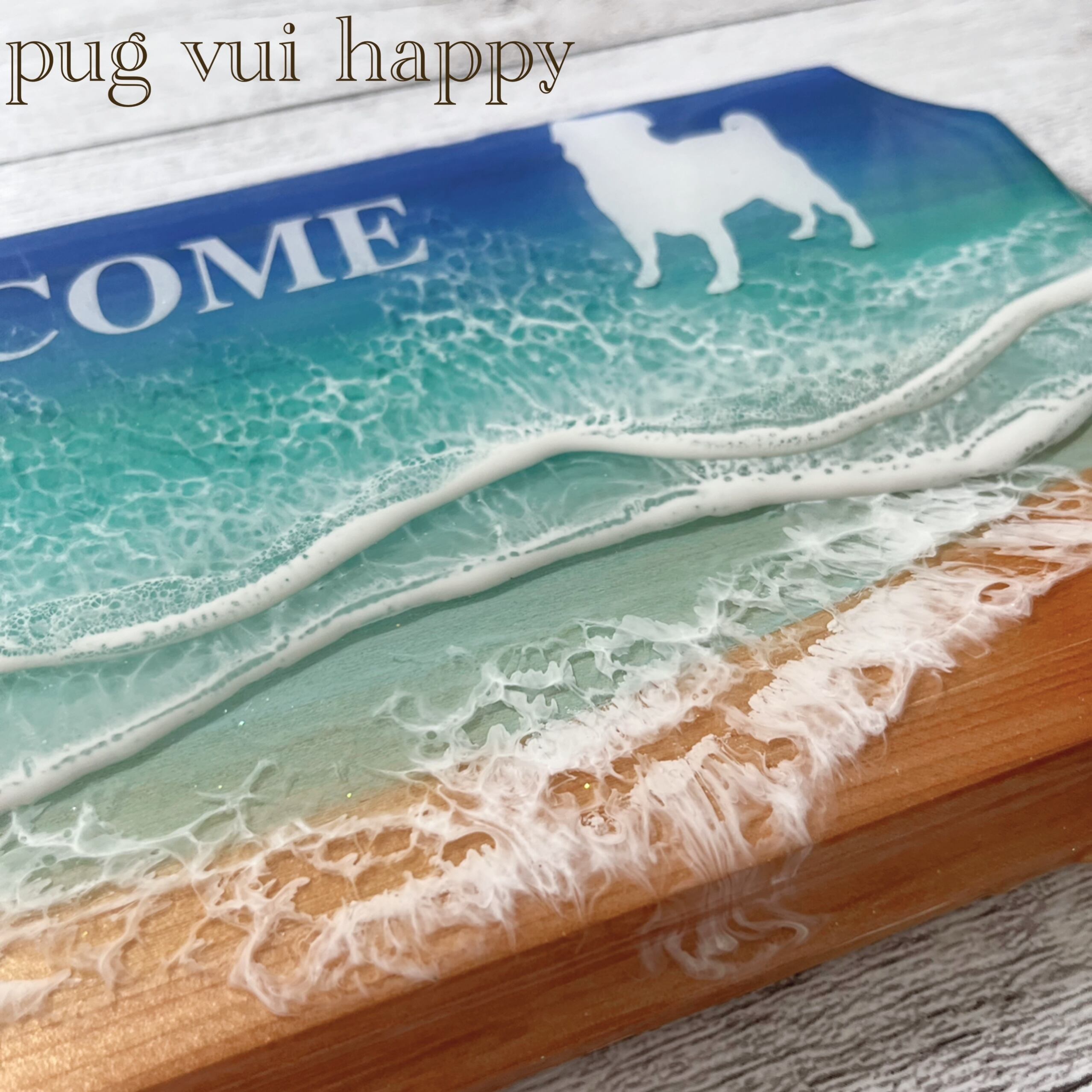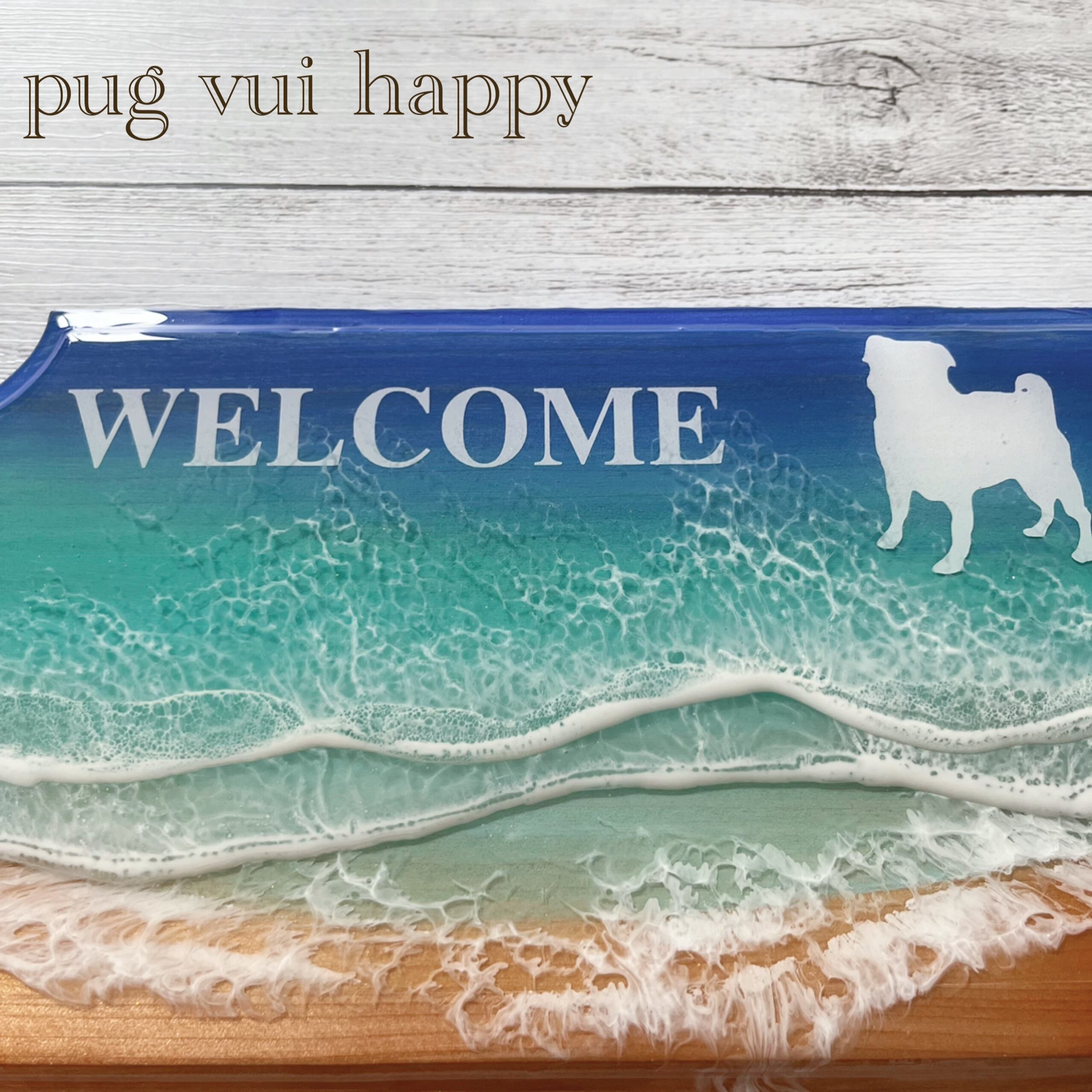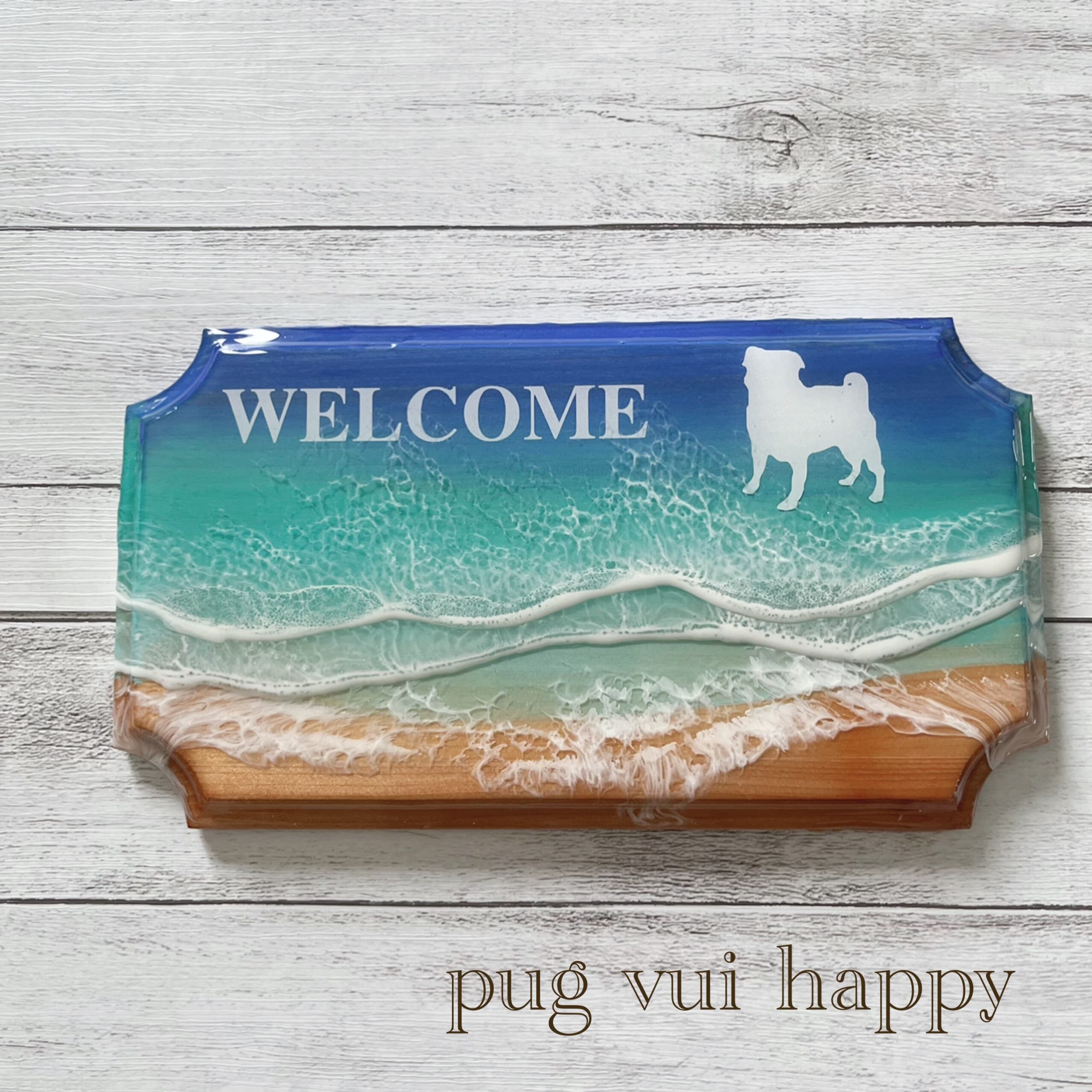 パグと海、一つ一つ手作りしております。